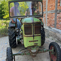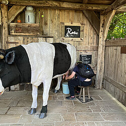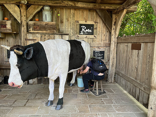 Wir haben Kühe, Schweine, Ziegen, Schafe, Hühner, Pferde, Gänse und ein Huhn gesehen.