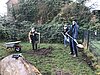 Hinter dem Fußball-Platz wird fleißig gearbeitet. Es sollen Garten-Beete gemacht werden.